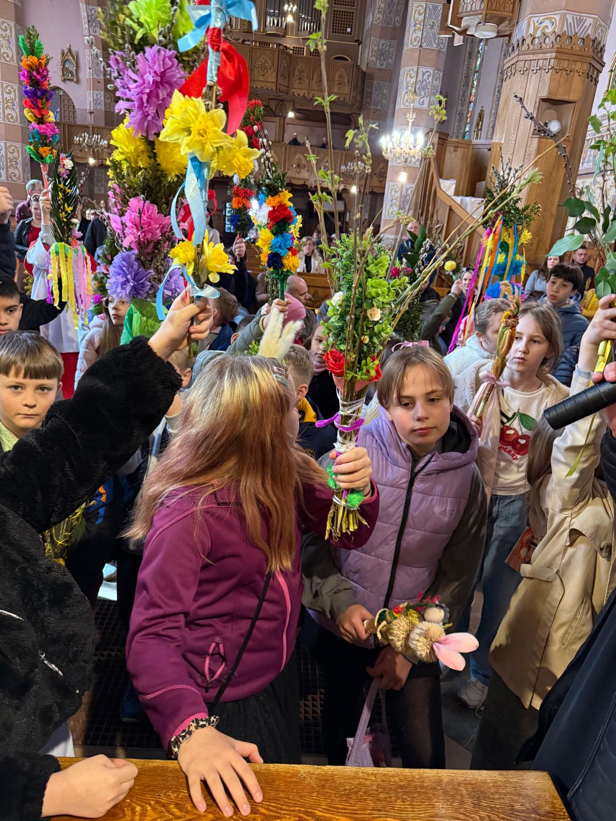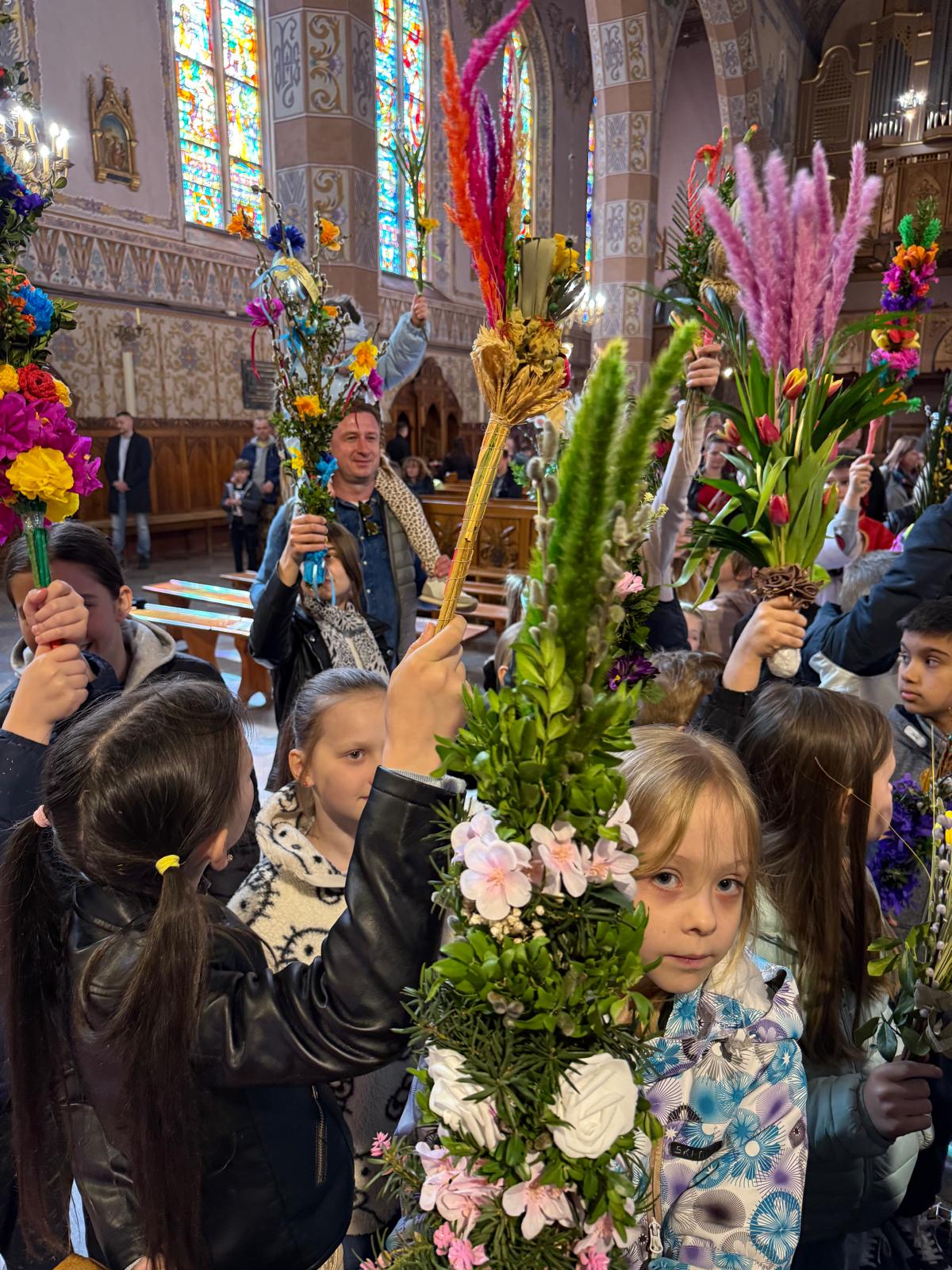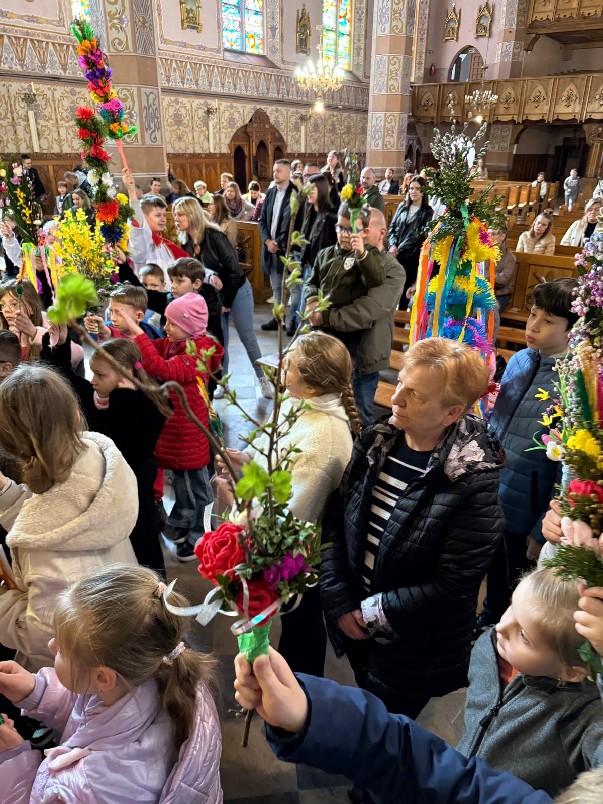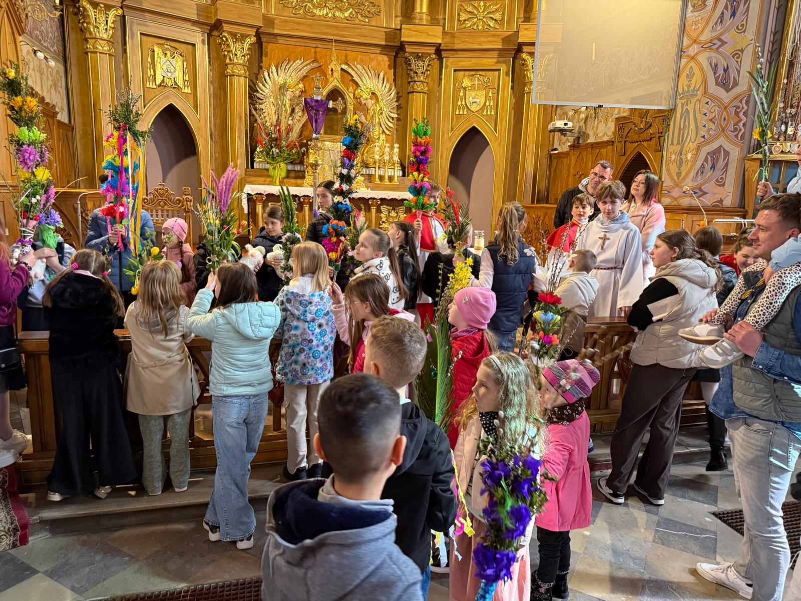 Wspomnienie uroczystego wjazdu Pana Jezusa do Jerozolimy znane jako niedziela palmowa co roku przeżywamy radośnie i kolorowo. Podczas Mszy Świętej o godzinie 11:30 odbyła się procesja wokół kościoła z palmami i wesołym śpiewem scholi dziecięcej prowadzonej przez p. Jolantę Wilczyńską. Cały kościół wypełniły własnoręcznie zrobione palmy i część wymagała nawet kilku tygodni pracy. Serdecznie gratulujemy! Zapraszamy do obejrzenia zdjęć z tego wydarzenia. Jednocześnie zachęcamy do uczestnictwa w Triduum Paschalnym w naszej Parafii.