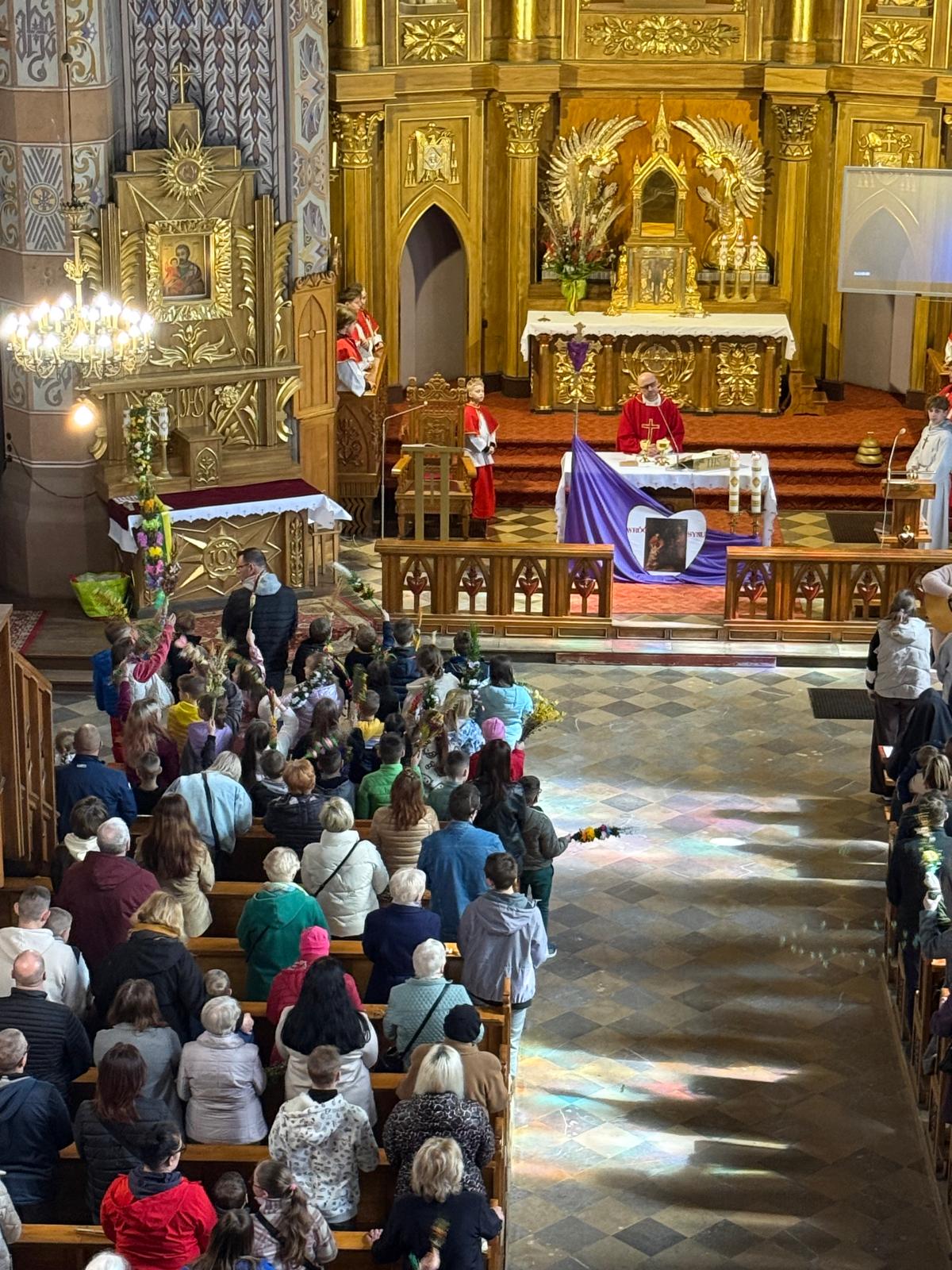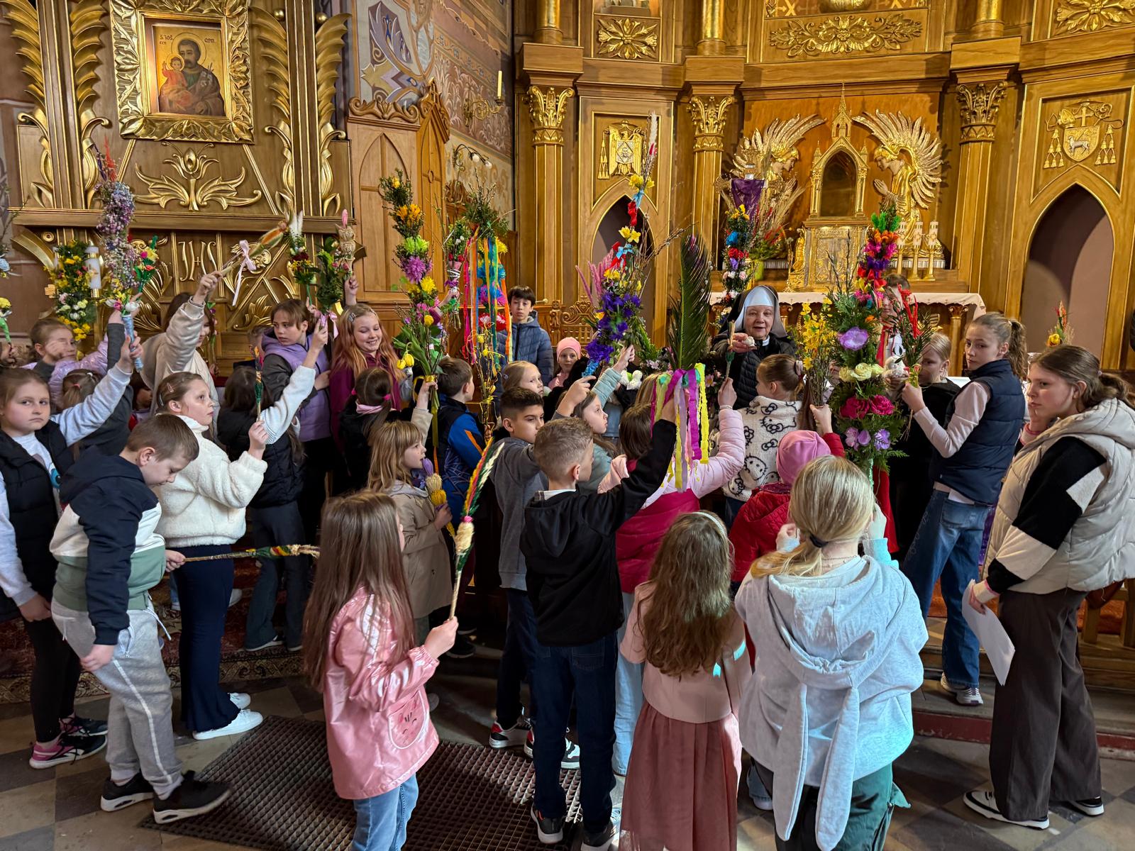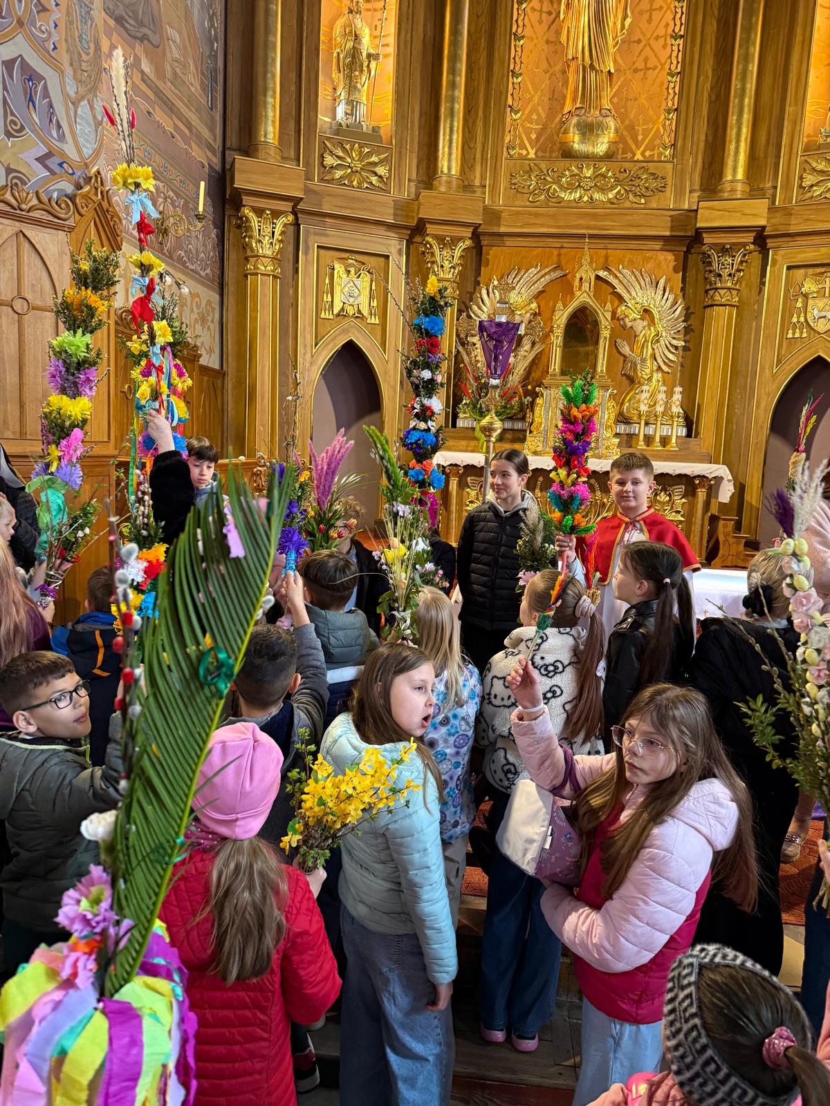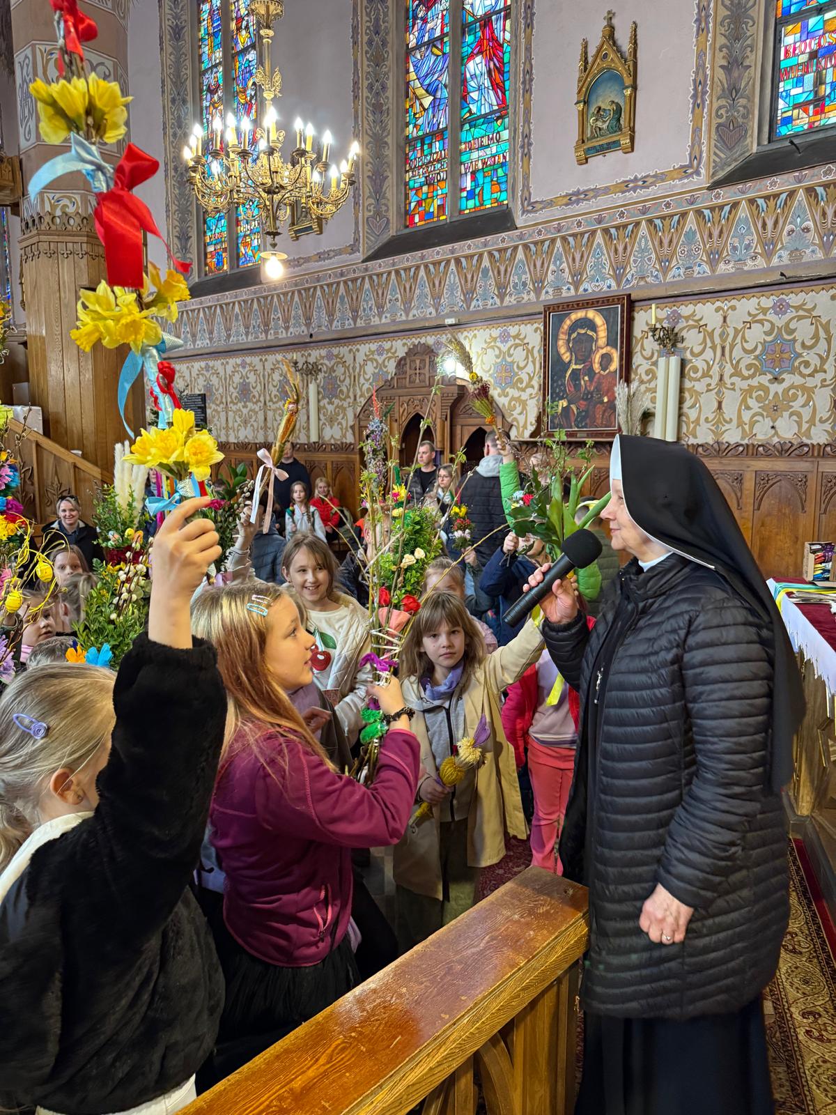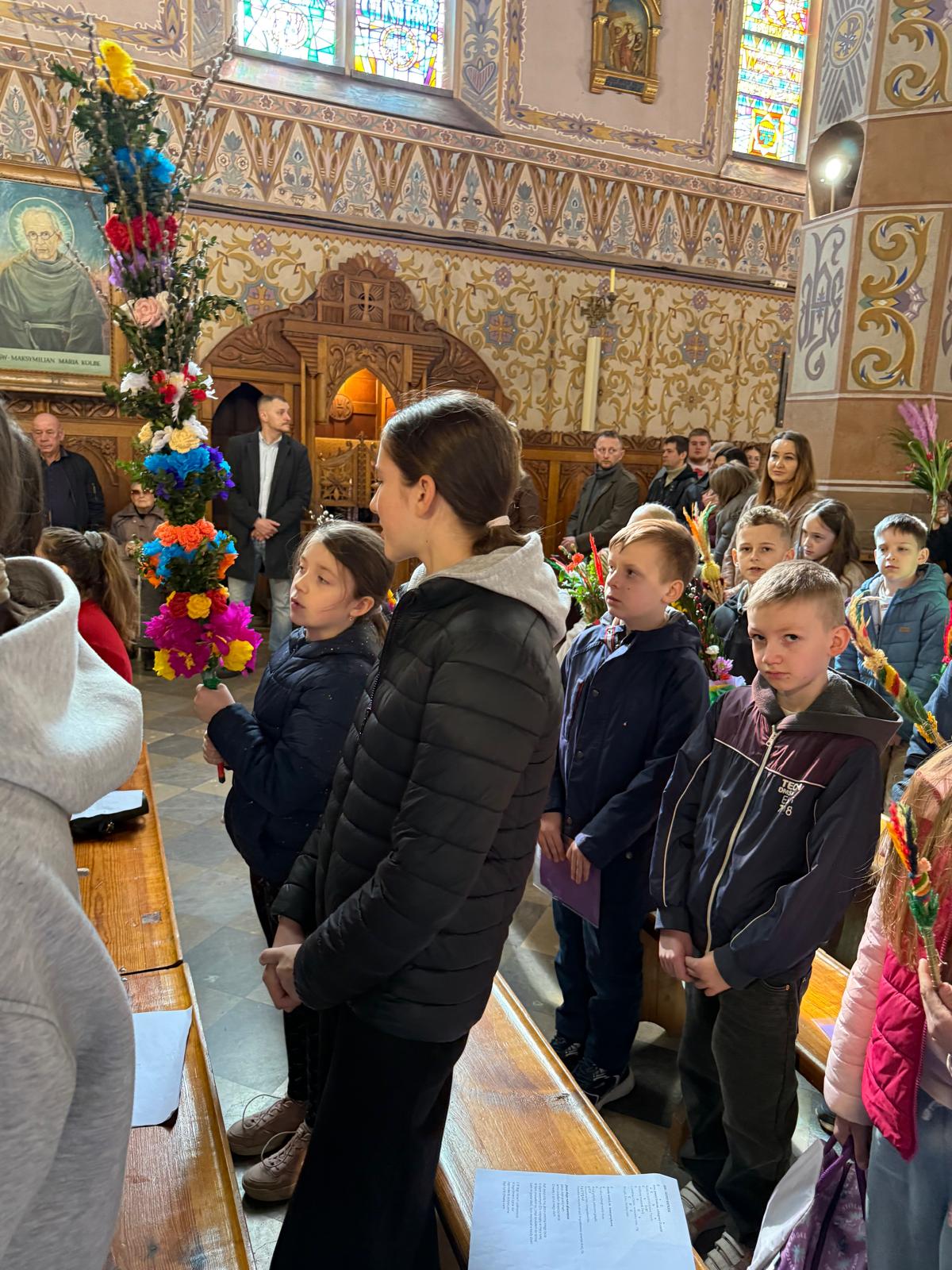 Wspomnienie uroczystego wjazdu Pana Jezusa do Jerozolimy znane jako niedziela palmowa co roku przeżywamy radośnie i kolorowo. Podczas Mszy Świętej o godzinie 11:30 odbyła się procesja wokół kościoła z palmami i wesołym śpiewem scholi dziecięcej prowadzonej przez p. Jolantę Wilczyńską. Cały kościół wypełniły własnoręcznie zrobione palmy i część wymagała nawet kilku tygodni pracy. Serdecznie gratulujemy! Zapraszamy do obejrzenia zdjęć z tego wydarzenia. Jednocześnie zachęcamy do uczestnictwa w Triduum Paschalnym w naszej Parafii.