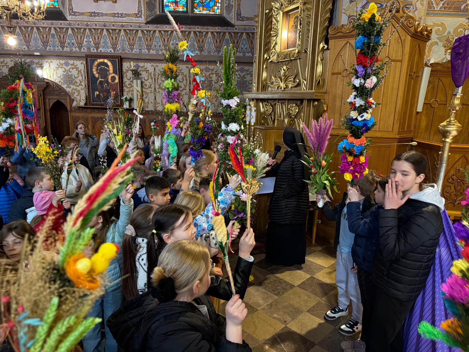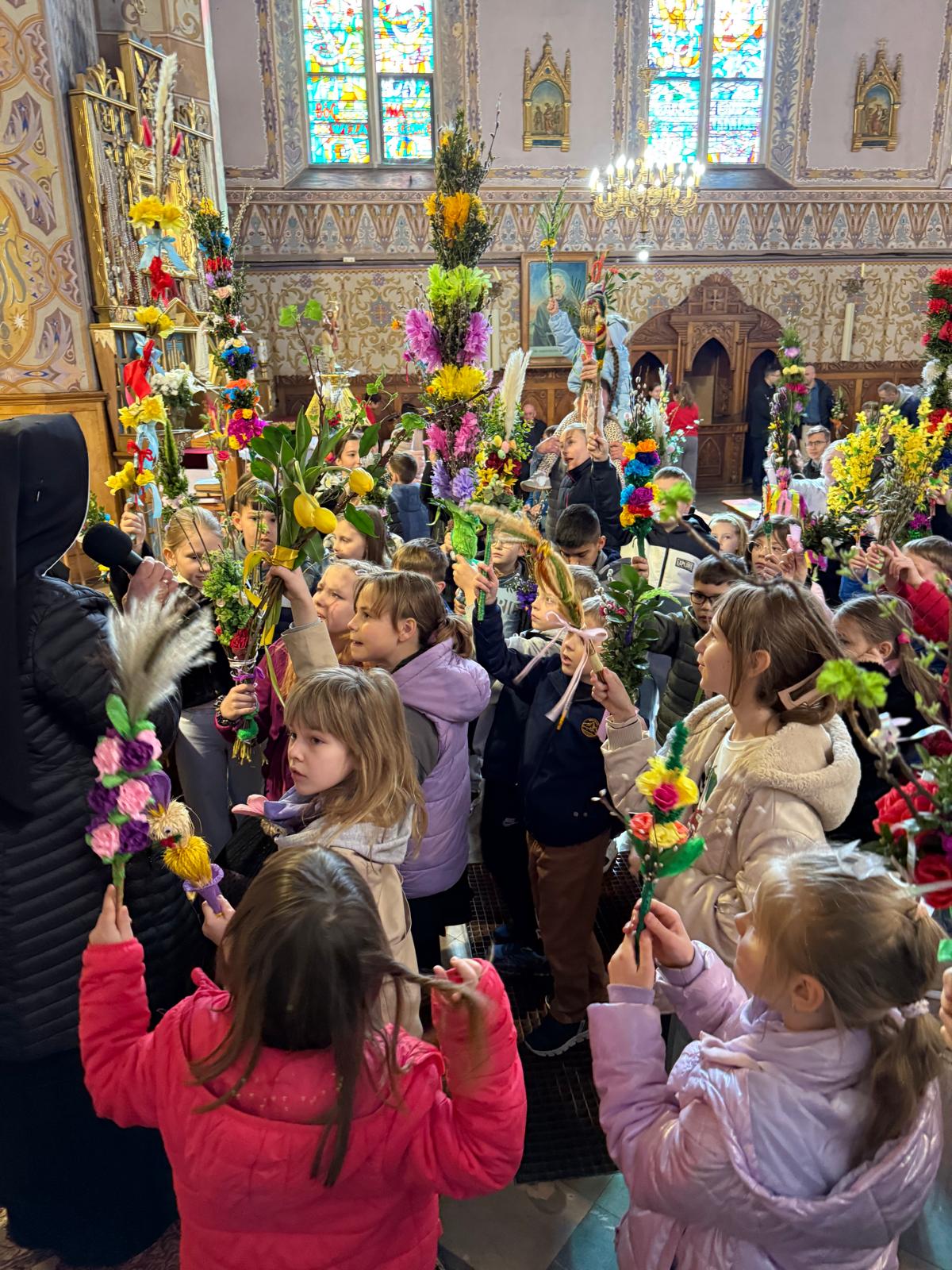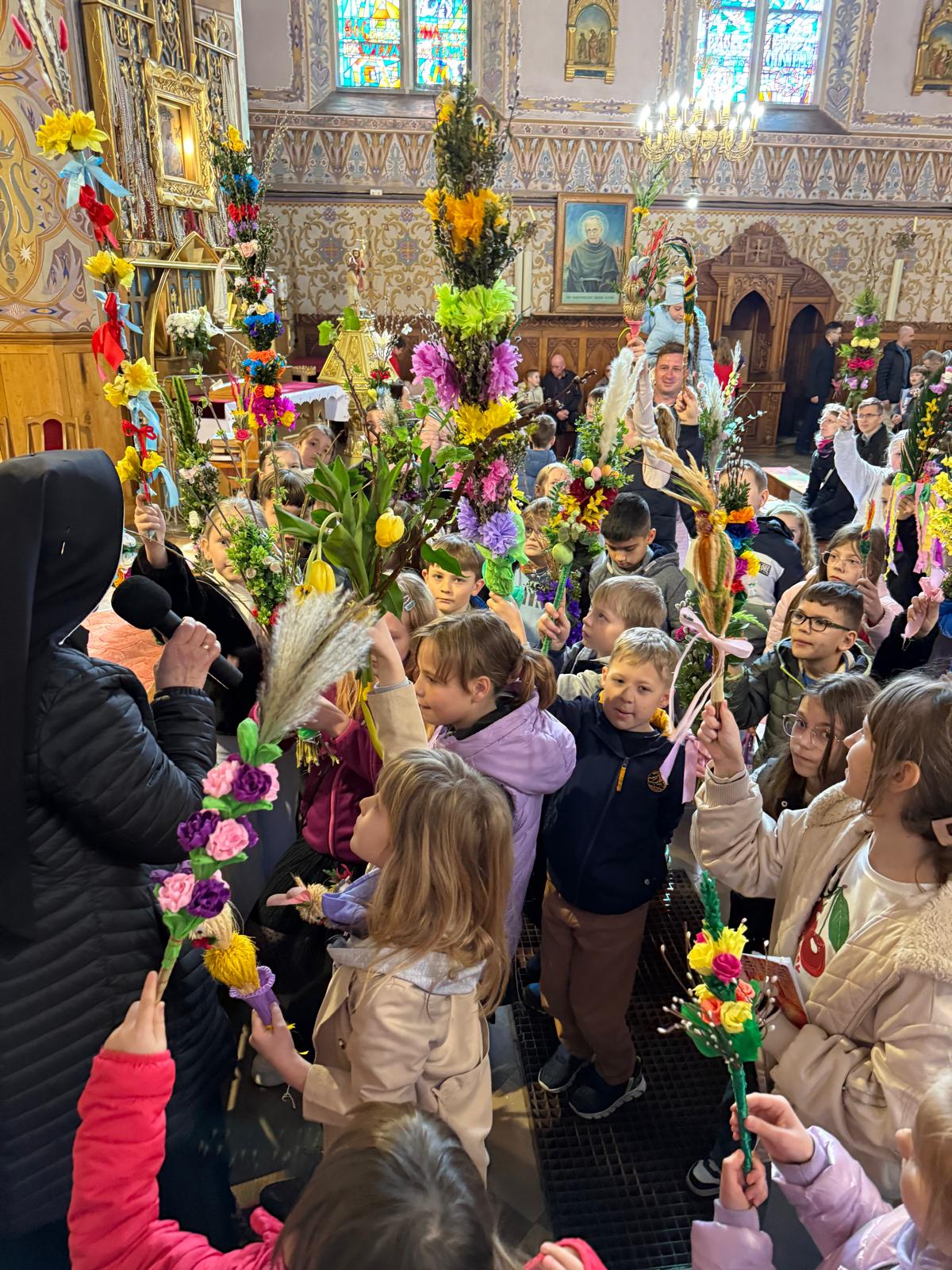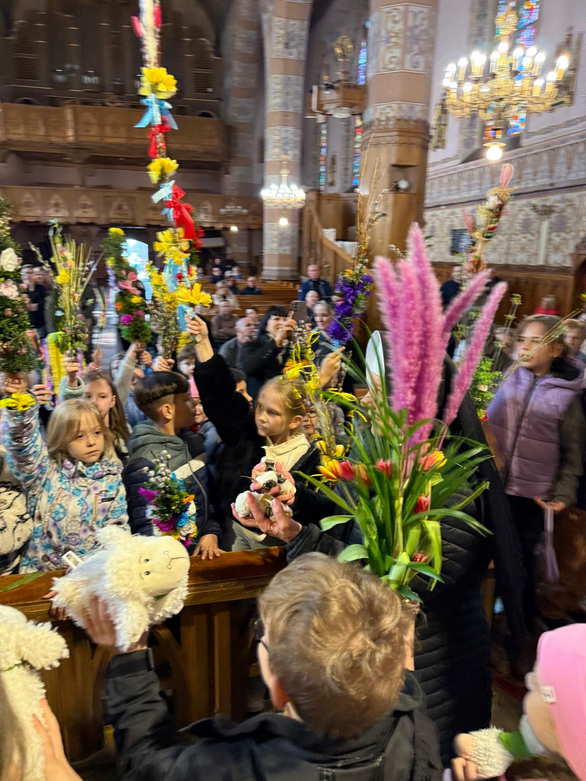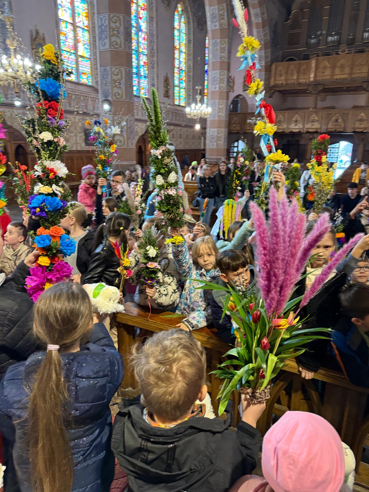 Wspomnienie uroczystego wjazdu Pana Jezusa do Jerozolimy znane jako niedziela palmowa co roku przeżywamy radośnie i kolorowo. Podczas Mszy Świętej o godzinie 11:30 odbyła się procesja wokół kościoła z palmami i wesołym śpiewem scholi dziecięcej prowadzonej przez p. Jolantę Wilczyńską. Cały kościół wypełniły własnoręcznie zrobione palmy i część wymagała nawet kilku tygodni pracy. Serdecznie gratulujemy! Zapraszamy do obejrzenia zdjęć z tego wydarzenia. Jednocześnie zachęcamy do uczestnictwa w Triduum Paschalnym w naszej Parafii.