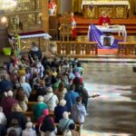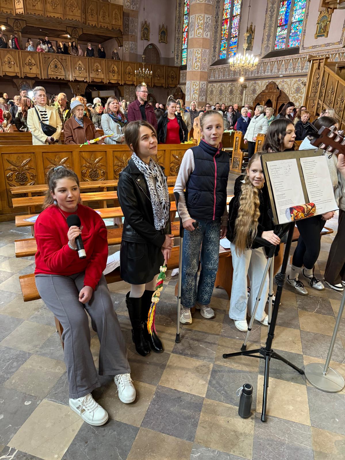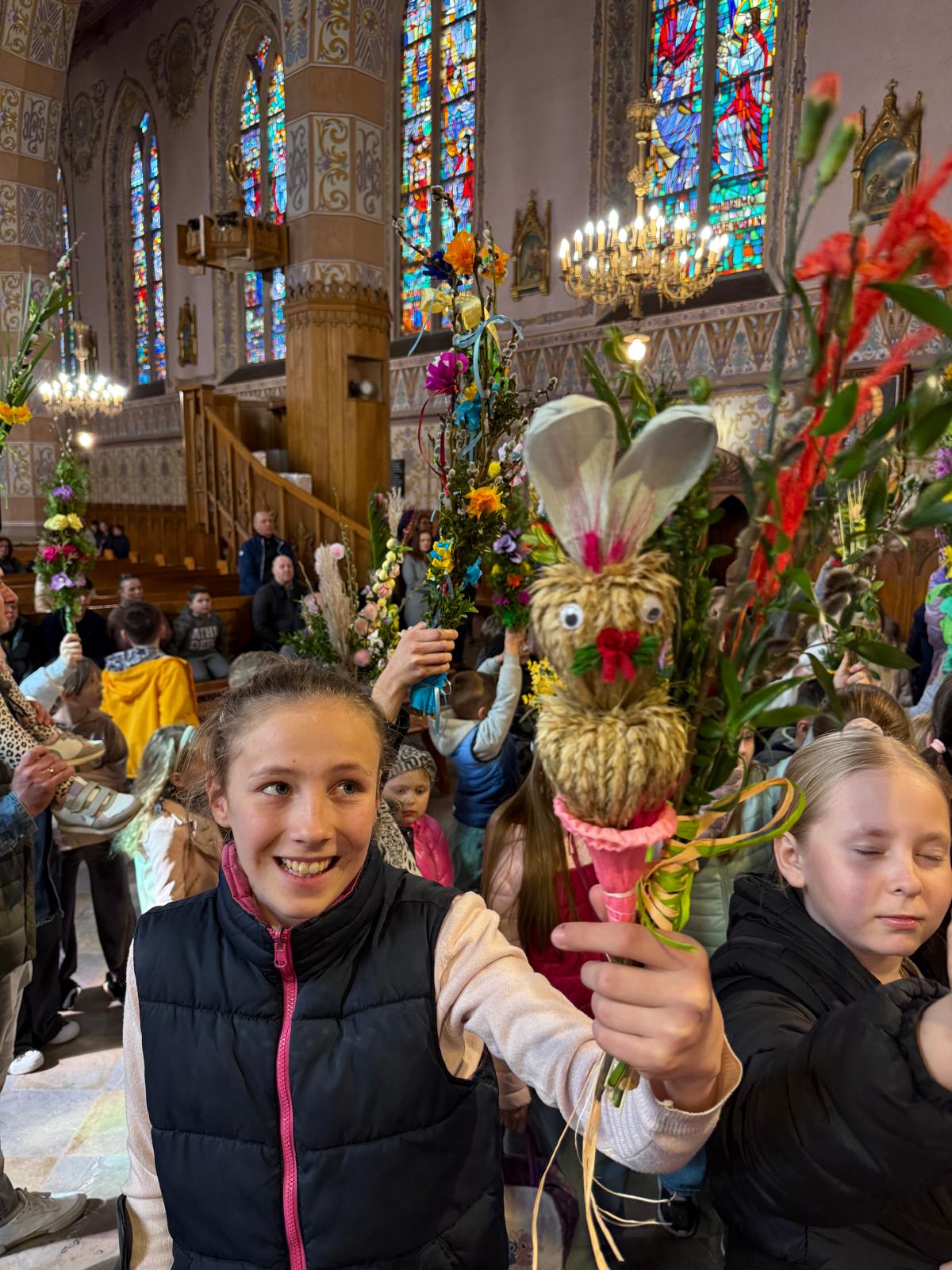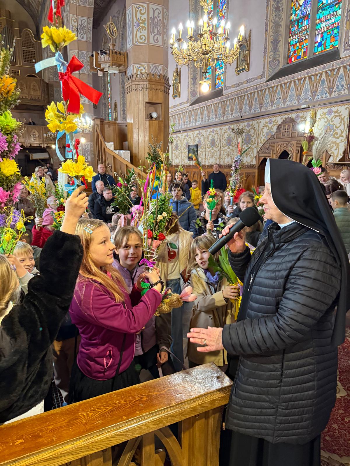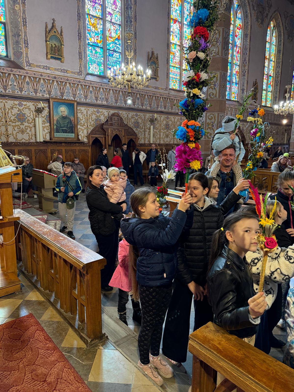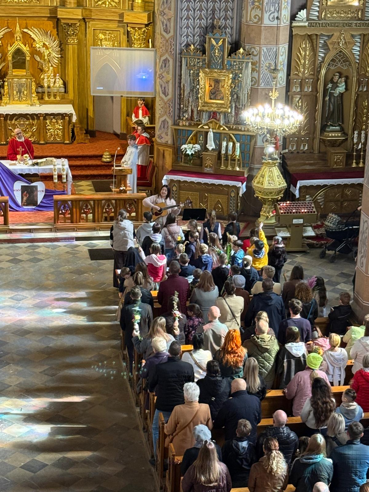 Wspomnienie uroczystego wjazdu Pana Jezusa do Jerozolimy znane jako niedziela palmowa co roku przeżywamy radośnie i kolorowo. Podczas Mszy Świętej o godzinie 11:30 odbyła się procesja wokół kościoła z palmami i wesołym śpiewem scholi dziecięcej prowadzonej przez p. Jolantę Wilczyńską. Cały kościół wypełniły własnoręcznie zrobione palmy i część wymagała nawet kilku tygodni pracy. Serdecznie gratulujemy! Zapraszamy do obejrzenia zdjęć z tego wydarzenia. Jednocześnie zachęcamy do uczestnictwa w Triduum Paschalnym w naszej Parafii.